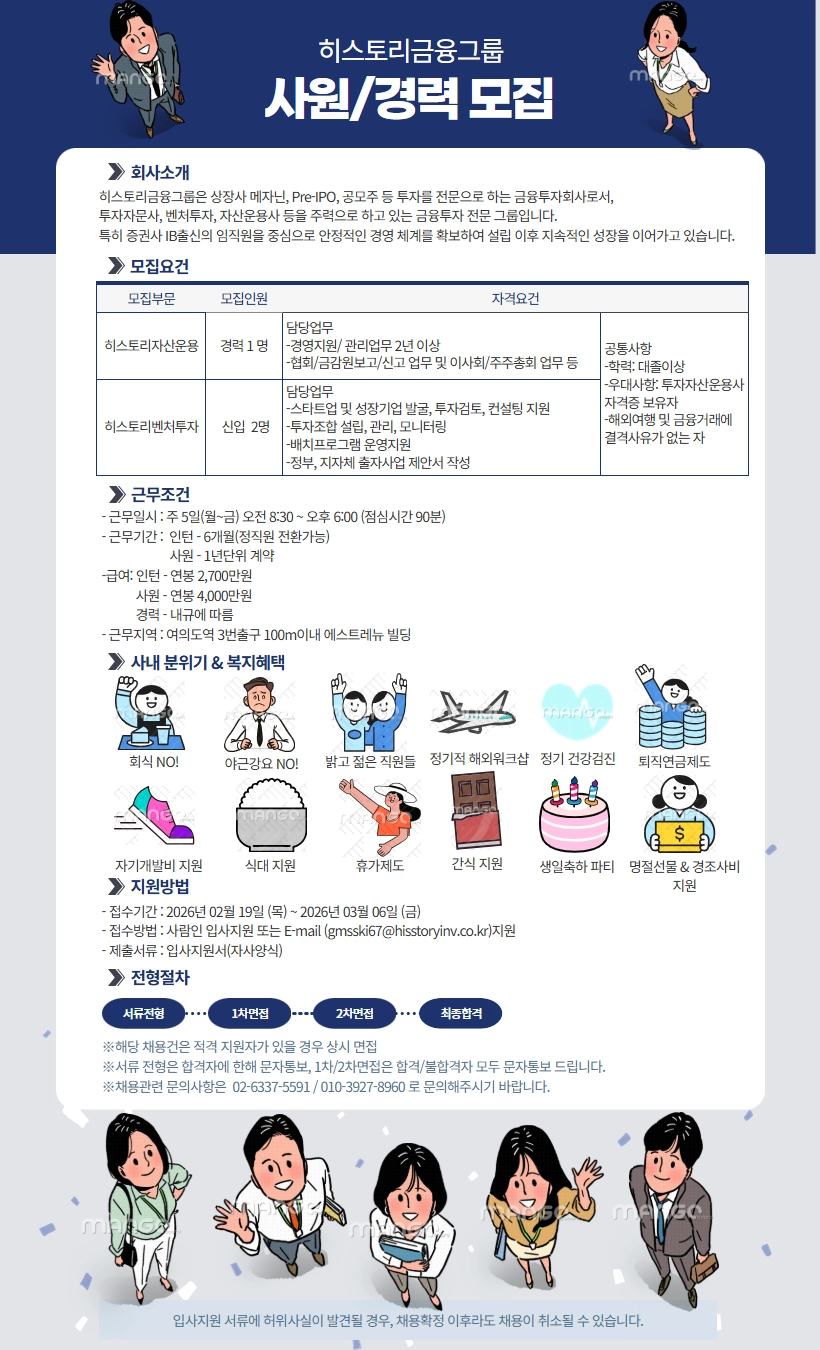 사람인[히스토리투자자문(주)] [히스토리금융그룹/자산운용, 벤처투자]사원/경력 채용 (0명)(D-3) - 사람인